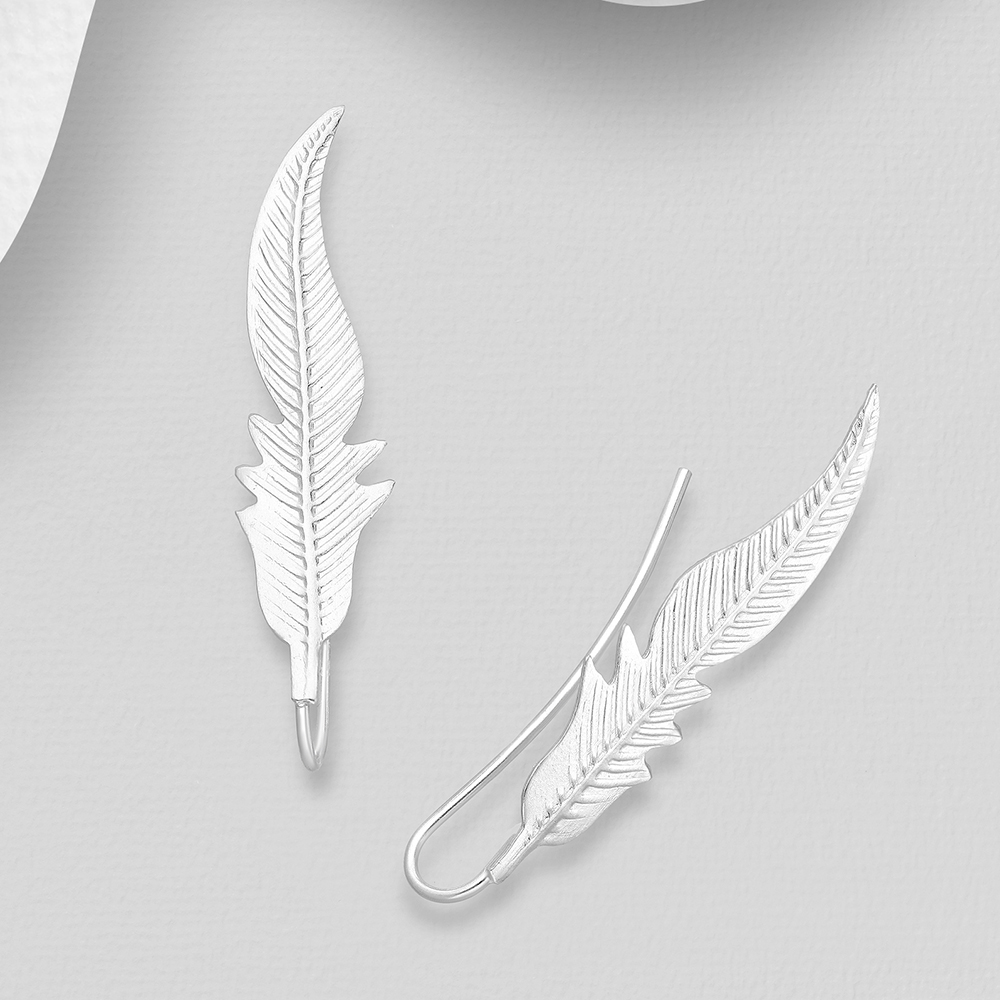 Augment your personal fashion style with this Sterling Silver feather Ear Climber. Designed to perfectly fit the curve of your ear. Make a statement of self-enlightenment with this beautiful and elegant pair.